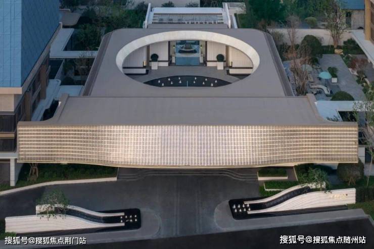 首先,楼盘的主入口是宽约46米、高约9米的阔绰大门,顶部是由约2280片波浪形的水晶玻璃瓦拼合而成的大屋檐,灵感来自“京杭大运河博物馆”。