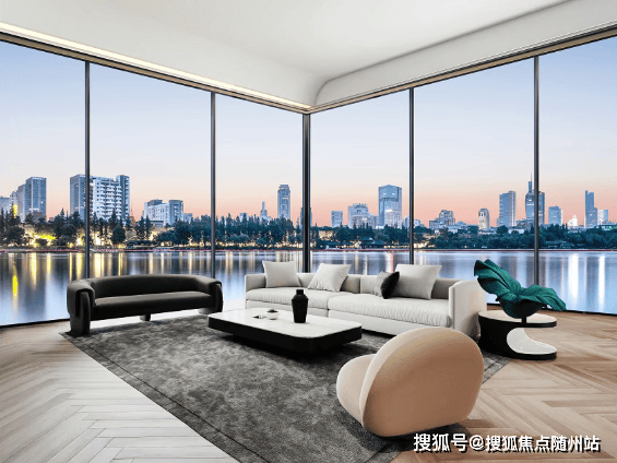 现代极简的建筑立面,为更大面积提升视野效果,南立面实现近90%的全玻璃面设计,如倾泻而下的一幕银瀑,灵动优雅直入心扉,呈现一场视觉盛宴。