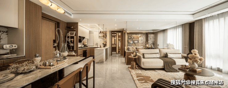 约15米奢阔面宽,超尺度的四开间朝南,让家中沐阳指数满级;超大LDK一体化餐客厅,配合巨幕落地玻璃,带来惊艳的扩容感和空间体验。