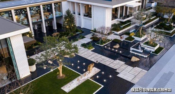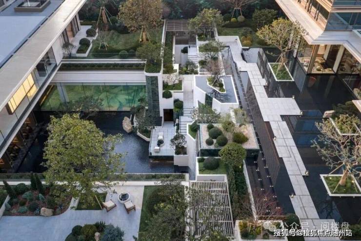 浮岛社区:整体抬高3.8米,首层6米挑高架空,形成“一轴七岛十一境”立体园林,含下沉庭院、镜面水景等;