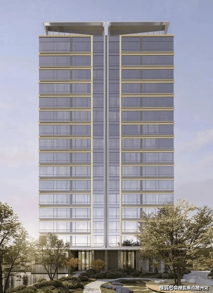 🟣超流体立面 铝板建筑三面大尺度玻璃和铝板,270°无柱转角飘窗设计,公建化极简建筑风格、超流体屏立面,勾勒建筑的轻盈之姿,呈现与岛屿共生的悬浮质感。