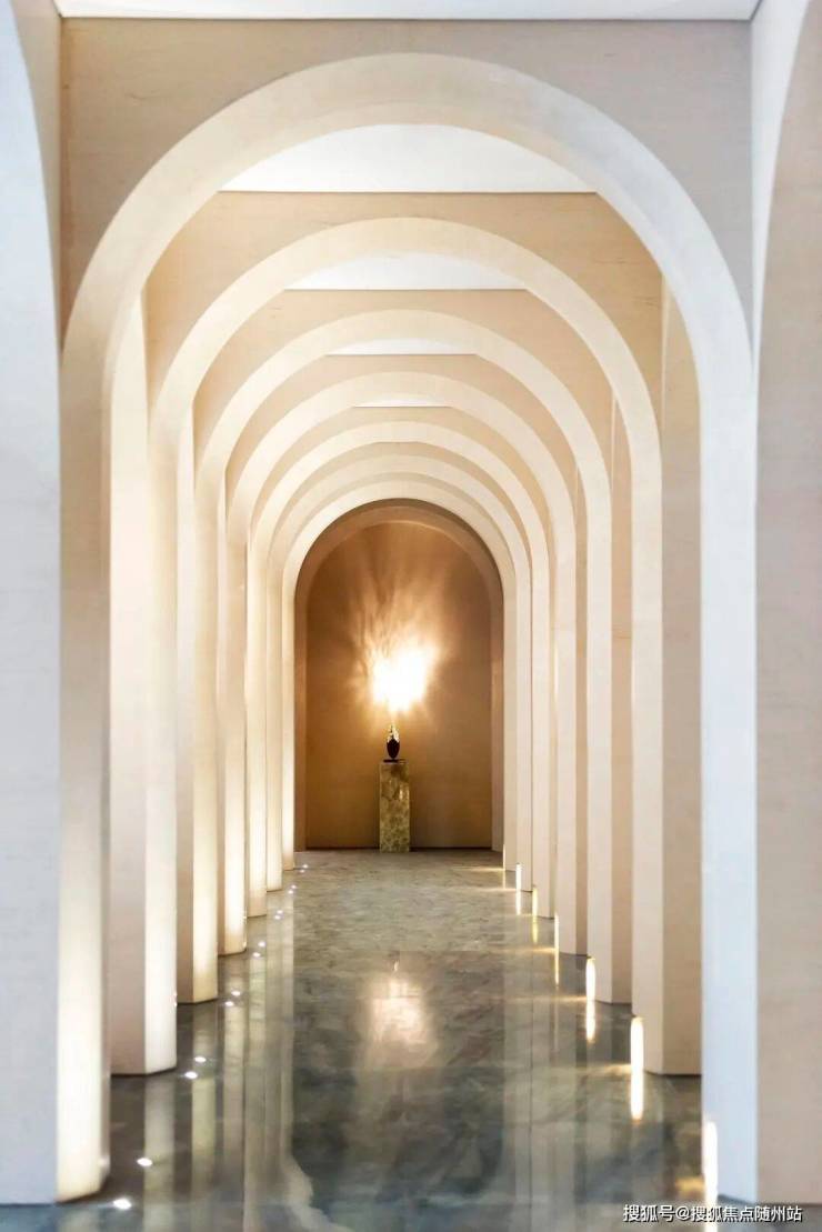 四面拱形廊柱源自巴黎卢浮宫造型,运用曲线工艺,置身其中艺术气息扑面而来。