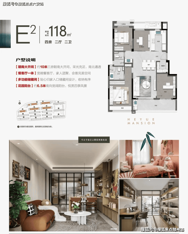 小高层(115-139㎡):经典四叶草户型,南北通透,139㎡户型南向面宽达12.5米,阳台长度6.5米,兼顾功能与舒适性。