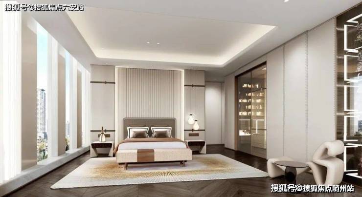 主力户型410-420㎡,以4.2米层高(装修后净高约3.5米)刷新杭州大平层标准。设计采用270°超60米三面采光,搭配全景落地窗,将钱塘江景与奥体天际线纳入室内。