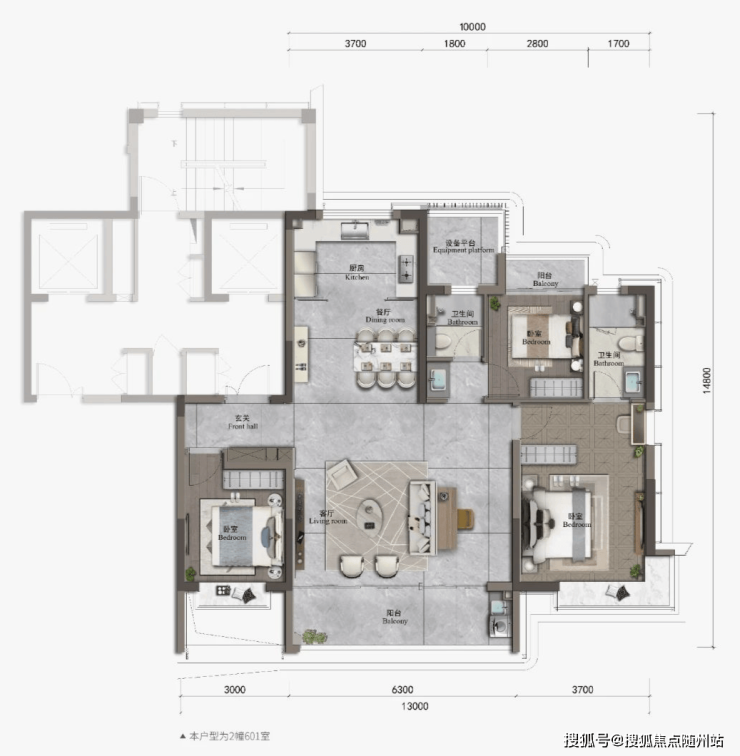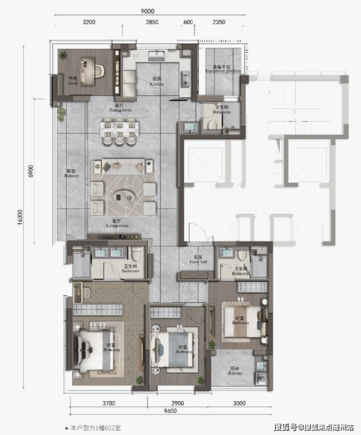户型①:建面约145户型图(效果图)