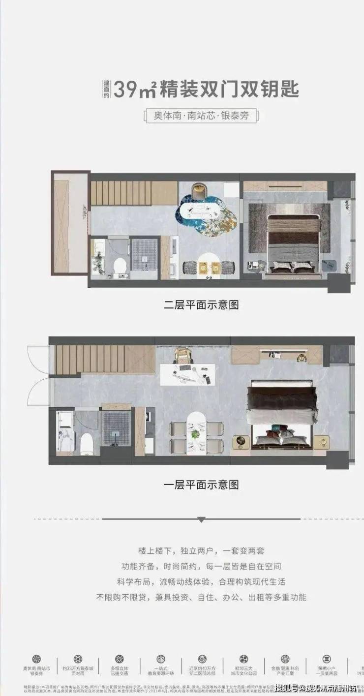 精装双门双钥匙,层高约4.5米,买一层享两层,小面积低总价、不限购不限贷,兼具投资、自住、办公、出租、养老多重功能,准现房收益可期。