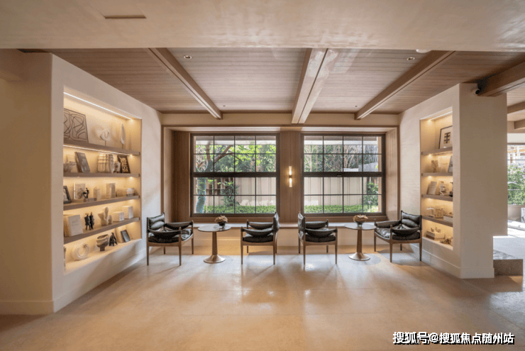 从沙发右侧望出去,窗外就是绿色的景致,等树木成长之后,会变成一个郁郁葱葱的“森系”空间,有种自家庭院的感觉。