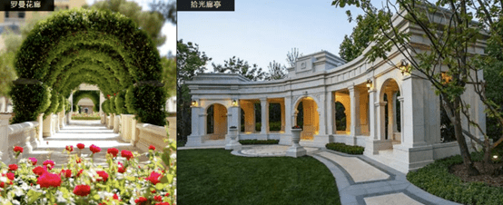 【户外场所全时化】①一般玉兰都是造穹顶+泳池,从社区实用来讲就是夏天实用,其他时候更对是观赏,玫瑰首次建造超长时光连廊,休憩空间更大,搭配草坪,更实用,营造四季法式生活场景;②玫瑰每一栋楼的入户,根据情况定制入户门头的大小空间,分为3种造景空间,地方大的做休闲运动,地方小点的做阅读,休憩;