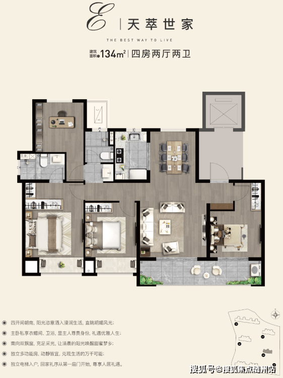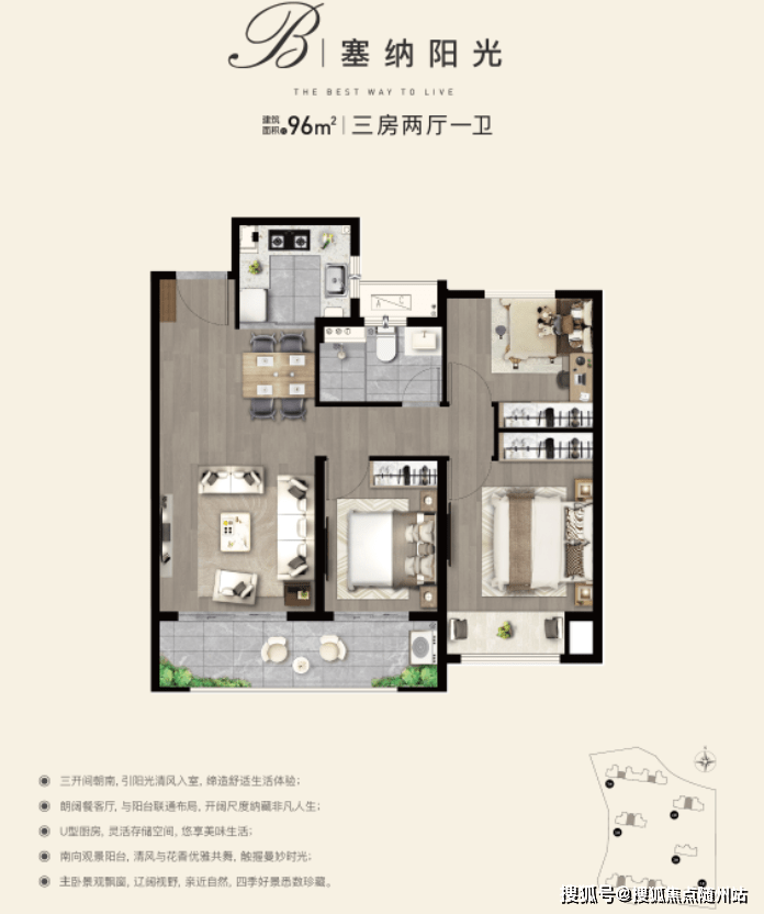 【户型空间舒适化】①玫瑰三开间朝南,全户型都做到了双阳台,从人性化的角度更加关注客户的生活需求,只为生活更舒适;