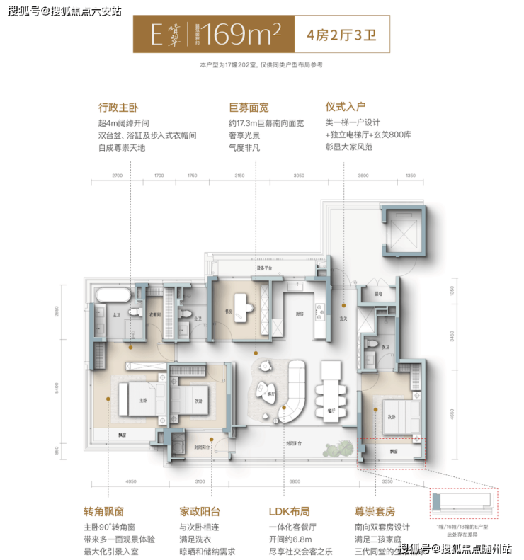 建面约105-110㎡三房入门主力户型,全屋设计了玄关“800库”、电视背景墙等;建面约125-139㎡四房改善户型,四开间朝南,南向面宽达约13.8米以上;约139㎡户型做到了各房间面宽均超3米,尺度舒适;建面约169㎡四房拥有约17.3米的巨幕南向面宽,部分房间可设计为双套房。