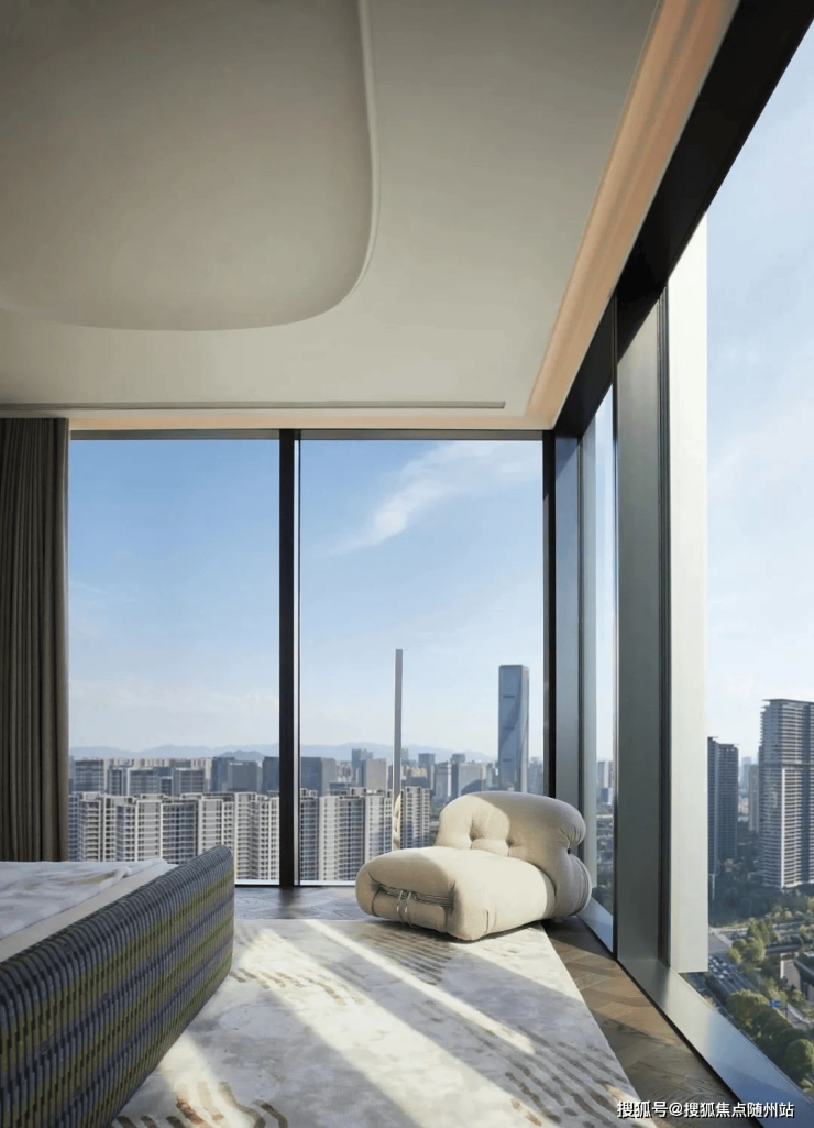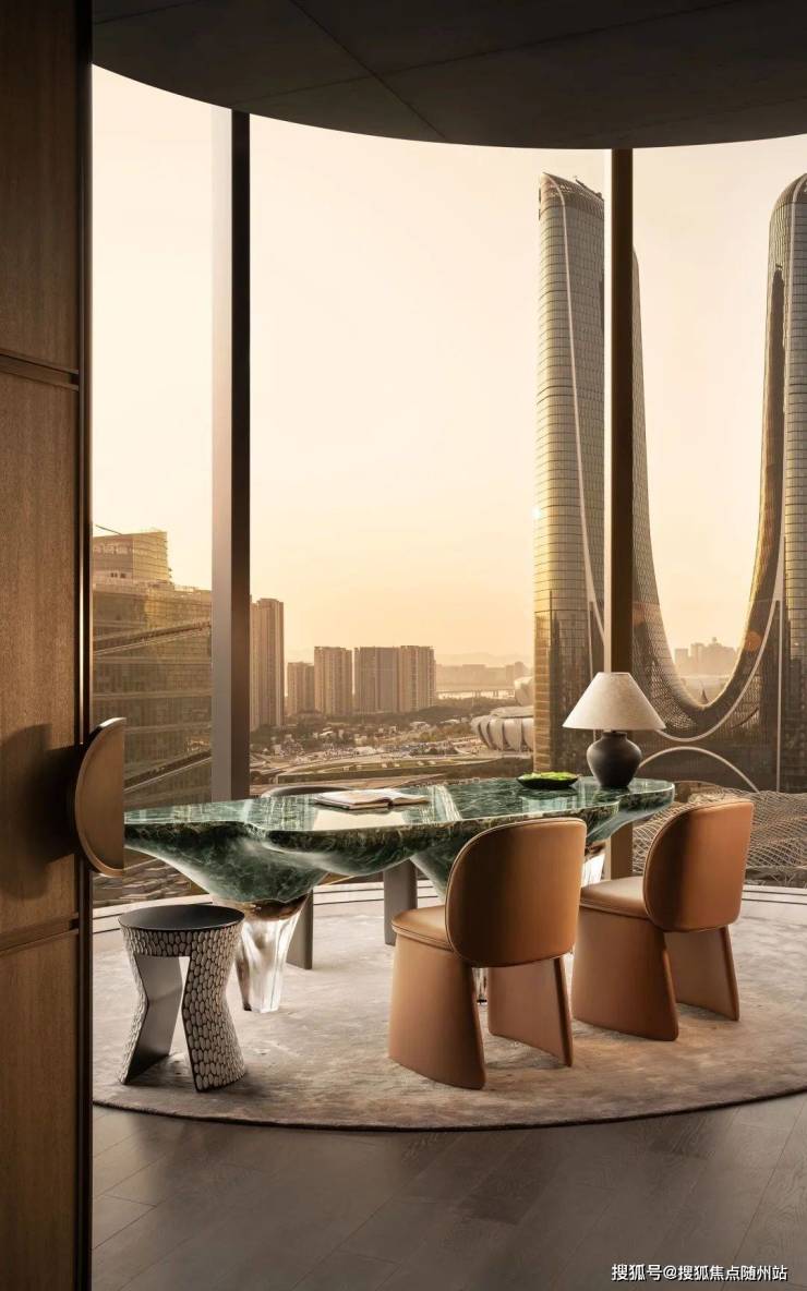 270度转角大窗,可近距离观赏到城市地标建筑,云光过隙、彩云流转,充盈着峡谷般的神秘气息。此个空间,于坐立行走中与自然元素联动融合,让生活其间的人拥有了一个唤醒灵感的机会,而故事还在继续。