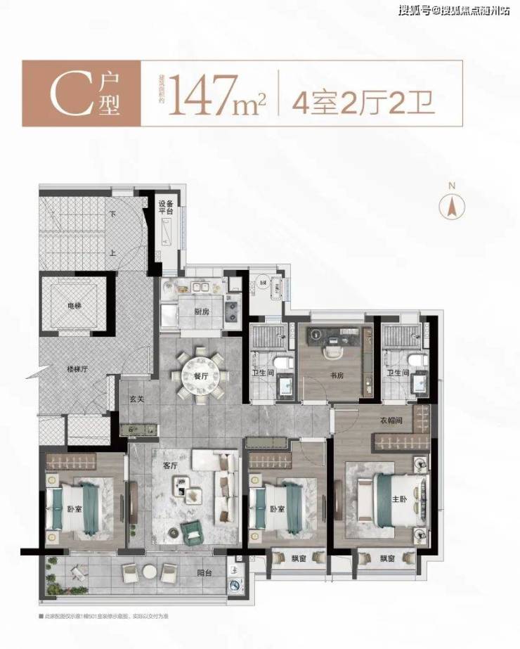 盛元·东江汇经过对当代层峯人士居住生活的思考与关注,以更前沿的居住理念,打造建面约120-195㎡的江园大宅。而其中建面约147㎡户型作为市场上主流热销的改善优选户型,照顾着每位家庭成员的专属空间,既可私享静谧,又可快速融入家的共享时刻、情感空间,舒适度之上,倍享家庭温馨时光。