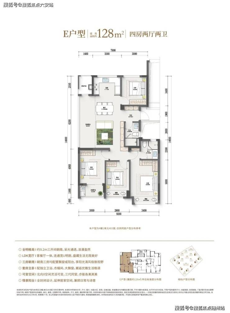 (四房户型,滑动查看更多户型图)