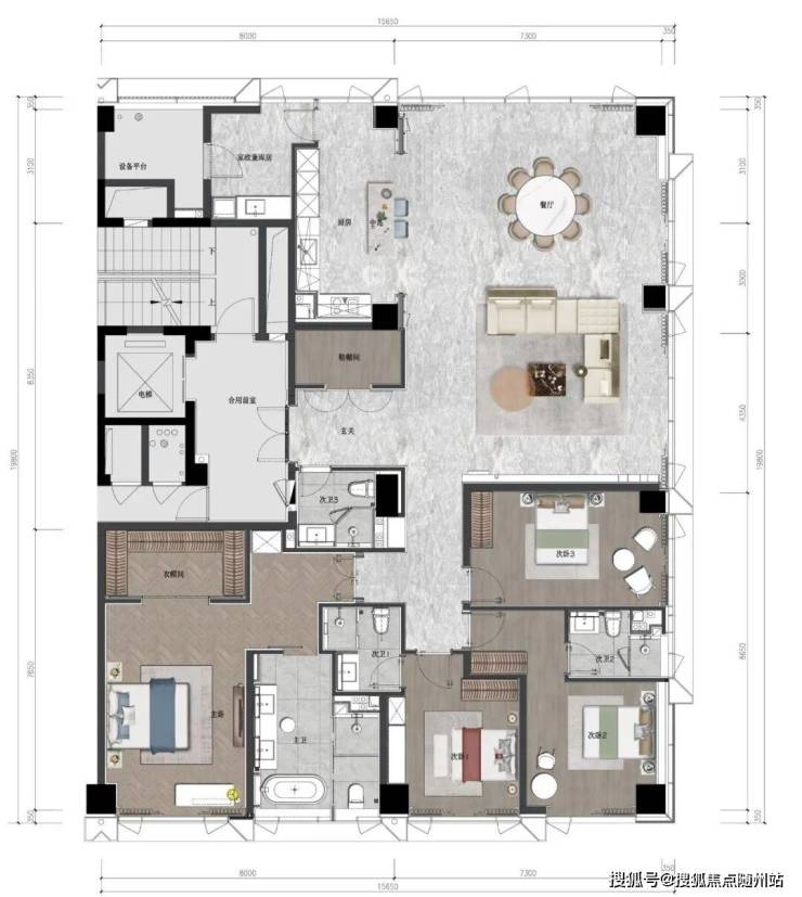 主力户型:300-320㎡(层高3.8米,得房率80%+,部分户型赠200㎡露台)