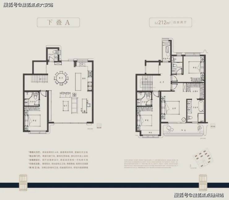户型方面,主力建面约210-280㎡四层叠墅,采用全套房设计,朝南大开间阳光满堂,主卧“小家化”,步入式衣帽间和独立卫浴间兼备,更大尺度的面积,更开阔的家庭社交区,更舒适的套房空间。