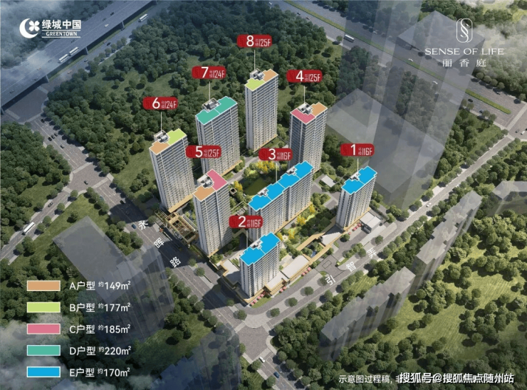 【户型面积】约149㎡、170㎡、177㎡、185㎡、220㎡