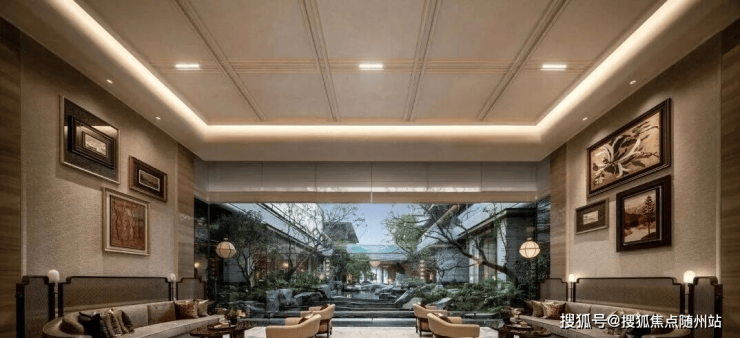 项目承袭中式院落精髓,打造“九进归家礼序”。复刻《溪山清远图》,从东侧“四水归堂”之门,经“十八学士”下沉