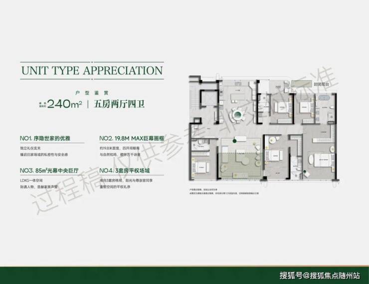 1、南向超大四开间,南向约19.8m超大面宽,南向全日照。