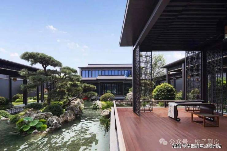 寰秀园境从宋画中汲取灵感,将内庭院墙、山石松色、镜水碧波融入园中