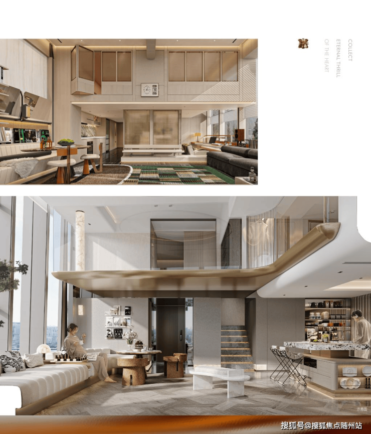 下层是向世界微微敞开的 「全场景SHOW场」 。「南向乐享厅」 承接充沛阳光,可随心境定义为咖啡角、阅读区或好友小聚的客厅;