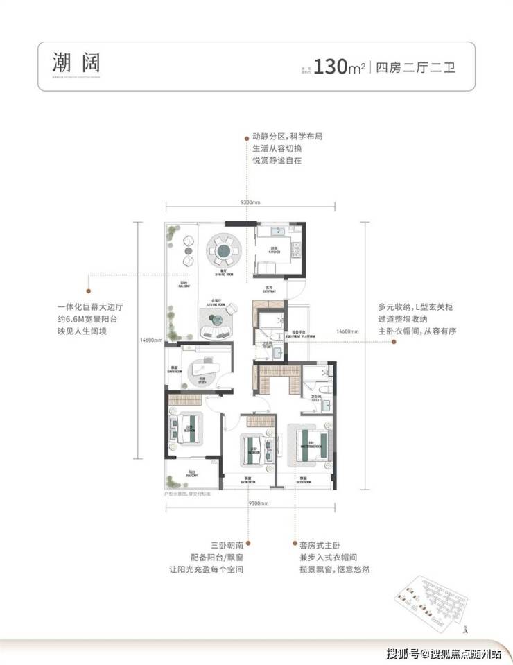 揽景小高层建筑面积约105-130㎡,为最大化景观面,突破性设计建筑面积约105㎡南向四开间。