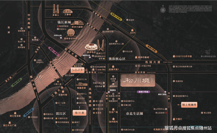 奥体2英里峰脊线,纵向金鸡路奥体顶豪林立,横向建设四路滨江产业澎湃。交相辉映的黄金十字轴,是见证杭州蓬勃向前的重要板块。