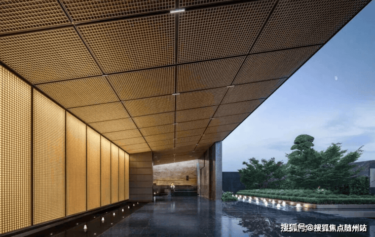 高墙阔院,是中国人骨子里的情怀。一道约5米高的巍峨高墙,大隐于市,围合一方礼序井然的车马庭院。约60米高定陶板大门,无言诉说着门第的显赫。两株约7米高进口罗汉松,历经千里,全冠移栽,于此成荫。金属格栅与天然奢石交织,诠释世家气度与文化底蕴。