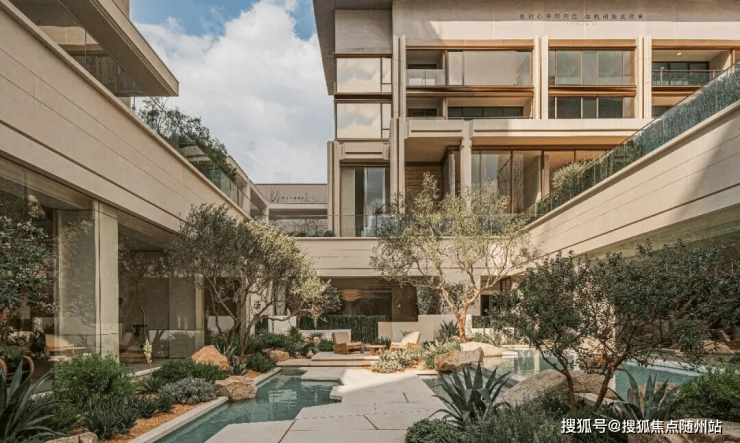 步入二进橄影廊庭,光影在回廊与水面间流转,构成静谧而富有呼吸感的水庭。天光倾泻,水色生辉,如同希腊安缦花园般悠然浪漫,演绎栖居的诗意序章。