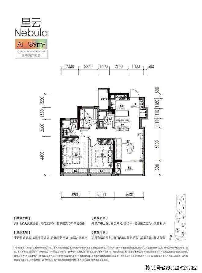 独立玄关收纳南边套房主卧带走入式衣帽间+独立卫浴+飘窗南向约6.4米面宽,带阳台,U型厨房带大开窗,餐客厅一体带约5.8米超长飘窗……该户型更具有生命力。