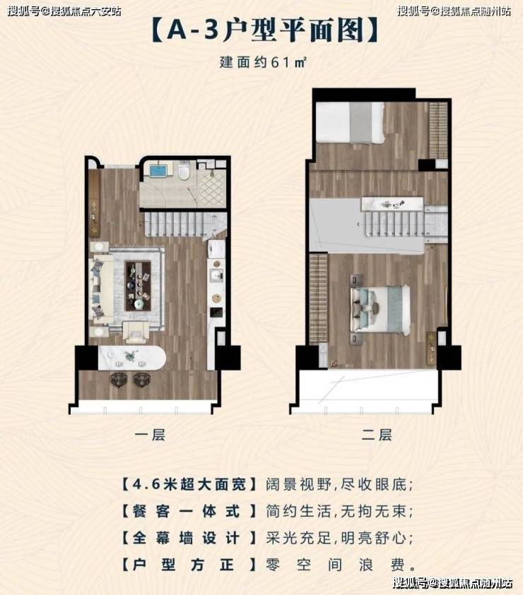 户型设计革新:建面约40-74㎡灵动空间,4.3米挑高买一层得两层,得房率超59%,独立双入户+双卫浴配置,可改造成工作室+自住、民宿或高端长租单元。