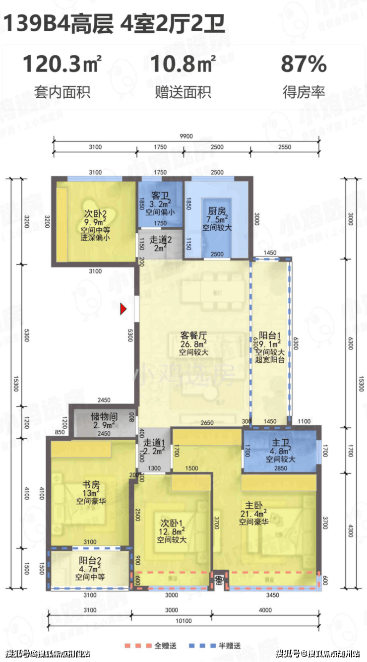 【得 房 率】:含赠送86-90%