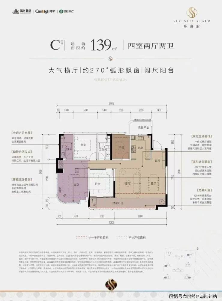项目打造建面约123-173㎡的主力户型。该项目在户型打造上也有诸多突破,如建筑面积约139㎡户型采用约6.8米全景横厅,采光极佳;约21㎡主卧带步入式衣帽间,搭配270°转角飘窗,更奢华明亮;双洄游动线体系既保证隐私又创造多元互动场景。