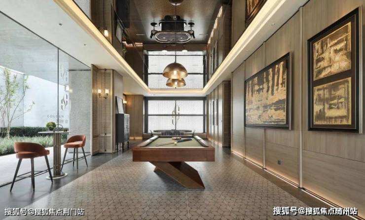 下沉庭院以约6.15米高的悬挑水帘、水中下沉卡座,构筑行走于水上的通行体验,与地下配套用房对话。地上地下的双园驱动,以直径约2.5米的雅典黑金花水钵为起点,以直径约2米的黄金麻整石水钵为终点,通过金澜线条的延续,串联景观故事线,回应湖映金沙的营销价值。