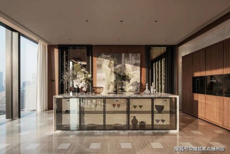 三餐四季,皆是叙事。比起“拥有什么”,生活的态度更在于“如何相处”。当视线从起居室转向餐桌,另一幅画面徐徐展开。圆桌中餐与西厨岛台并置,既契合中式家庭聚餐、高端宴请的礼仪,也享有西式开放式餐厨的社交温情。视线在此自由流动,交流与互动随性而生。