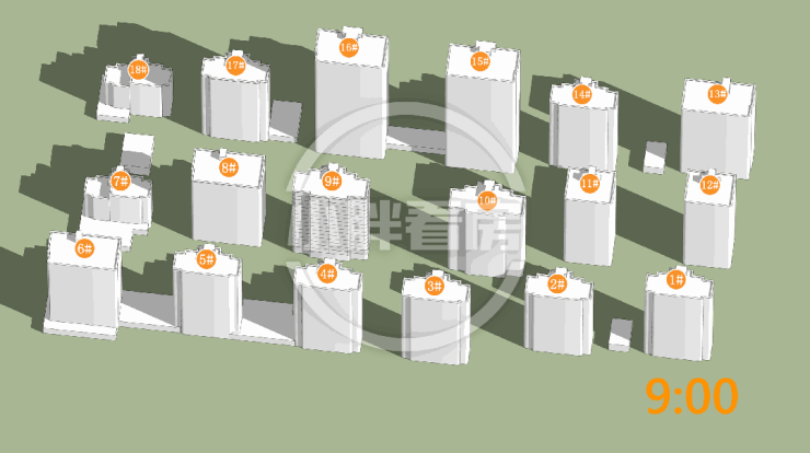 春分秋分(9-15时)在售楼栋日照时间和动图