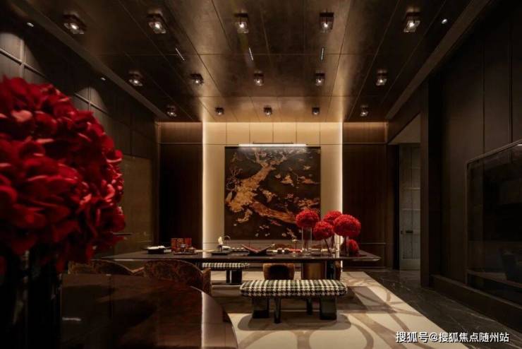 大堂入口,奢与雅在此碰撞。以百达翡绿奢石为景墙,一墙碧色仿佛凝固的千年烟雨;仰首望去,龙鳞纹金属面板覆顶,鳞光微动,似苍龙破空而来。豪门气场,令人屏息凝神。