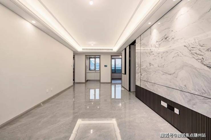 客厅双面背景墙:现在很多项目,连电视机背景墙都不做的情况下,翠栖府出人意料地做到“双背景墙”——电视机背景墙+沙发背景墙,开创“双背景墙”时代,其中电视机背景墙是大片岩板上墙,而沙发背景墙则是硬包的形式。提的一说的还有,主卧的背景墙,翠栖府这次也是“交付标准”。
