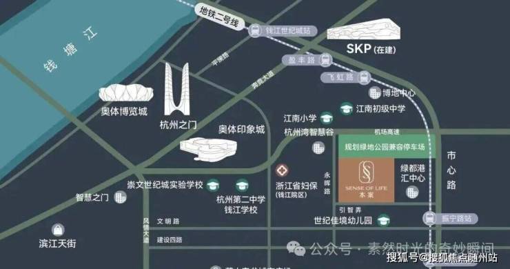 项目直线距离江南岸的中轴线市心北路约160米,向北贯穿世纪城,连接博地中心、在建SKP,通过庆春隧道直抵钱江新城、湖滨等;向西直达滨江区核心区;向南联通萧山主城,触达萧山万象汇、旺角城等高能商业旗舰。