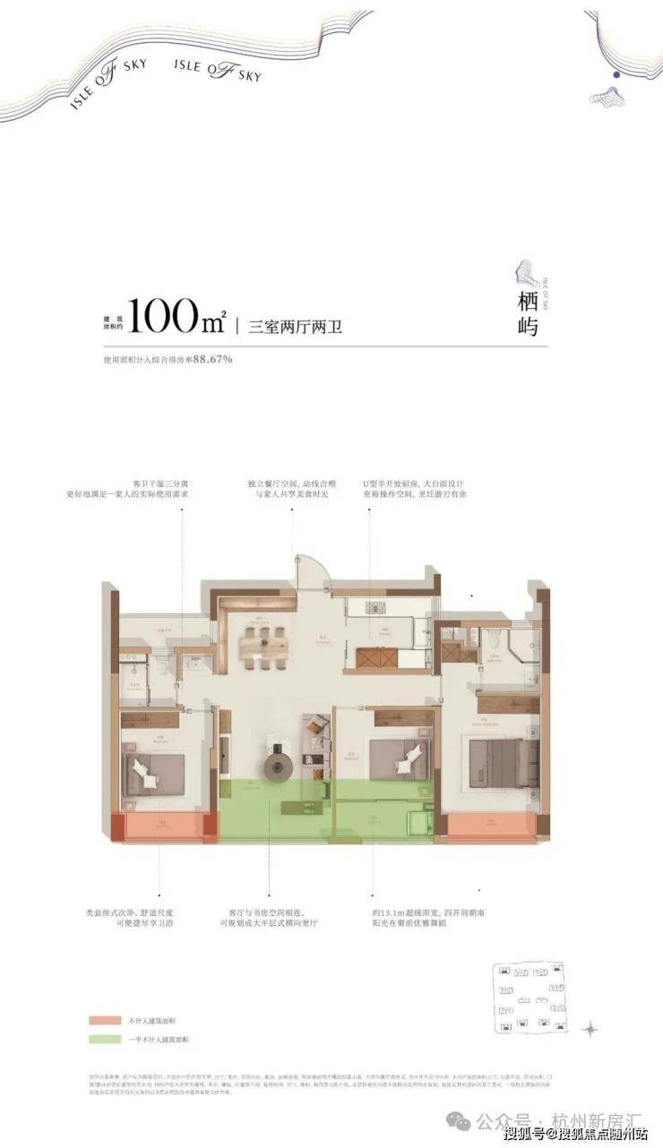 比如建面约89㎡是杭州时隔许久的小户型回归,得房率约91%,打造三开间朝南约9.65米大面宽、餐厅配有“S墙”可嵌入式双门冰箱,帮助年轻人轻松买房,住得更好。