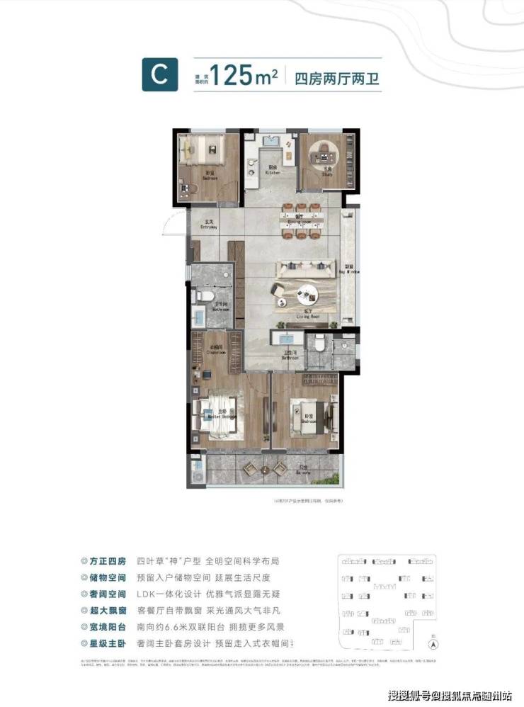 中建·潮阅尚境府总户数1689户,户型面积段分为建面约98方、105方、125方、135方、139方五种,其中主力户型为98方的三房两厅两卫的中间套和边套,合计逾千套。98方三房两厅两卫边套户型,是市面上稀缺的边套小户型,但相对很多其他项目,中建·潮阅尚境府在户型细节上,做到了更舒适。