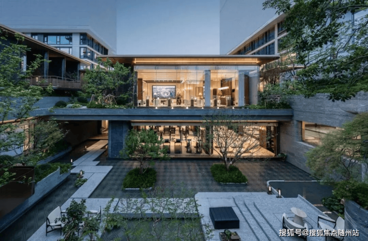以「庭园一如」为设计内核,通过立体高差重构场地肌理,将功能空间与园林景观融为一体,营造庭间有园、步移景异的游园“叙事感”,地上地下皆庭园。全风雨连廊设计,串联“两心六组团”景观园林,林下花园/台地花园/特色叠水等景观布局,步移景异,绿疗生息。