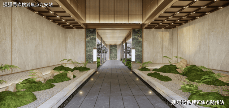 项目入口处设计活力街区,串联无限广场、天空绿岛、台阶剧场等六大创意场景,将城市公园的丰盛日常引入社区。归家路上,以璞丽酒店穿越竹林的入口设计,打造“璞丽长廊”隐奢酒店式入口,融合项目定制精奢门牌等,呈现处处是专属、步步有迎接的独家尊属体验。