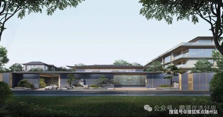 约50米宽的“隐奢”大门是序章;园林是项目灵魂,设计运用宋代山水画,打造“一轴一带八景十巷”的多进式游园体系,真正做到步移景异,窗窗成画;外立面采用香槟金铝板、蓝眼睛石材与玻璃幕墙,融入歇山重檐、纳福悬鱼、黛墨青瓦等宋式元素,实现古今交融;小区还规划约2000㎡下沉式会所,配备恒温泳池、健身房、私宴厅、儿童区,将成为业主专属的高端社交与休闲场域。