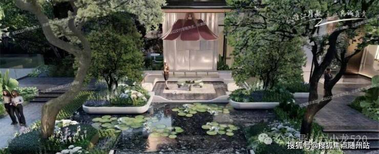 320平米的下沉式庭院模拟自然山谷形态,通过叠水、绿阶、浮岛等元素,营造“瀑布挂崖间”的动态景观。庭院中央设置女王画舫,掩映于林间与水湄之间,业主可在此品茶、观景,感受“都市女王”的优雅气质。