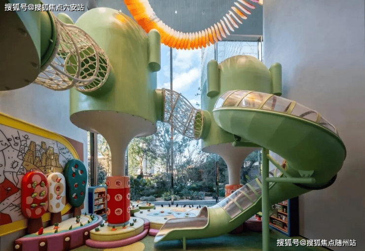 在5号楼下的架空层,项目腾出空间做了一整层的超大童玩空间。整体面积超过480平米,运用大面积的落地玻璃窗,让这个区域变得更加透亮。让绿意充分渗入,实现近距离、无遮挡观景视野。