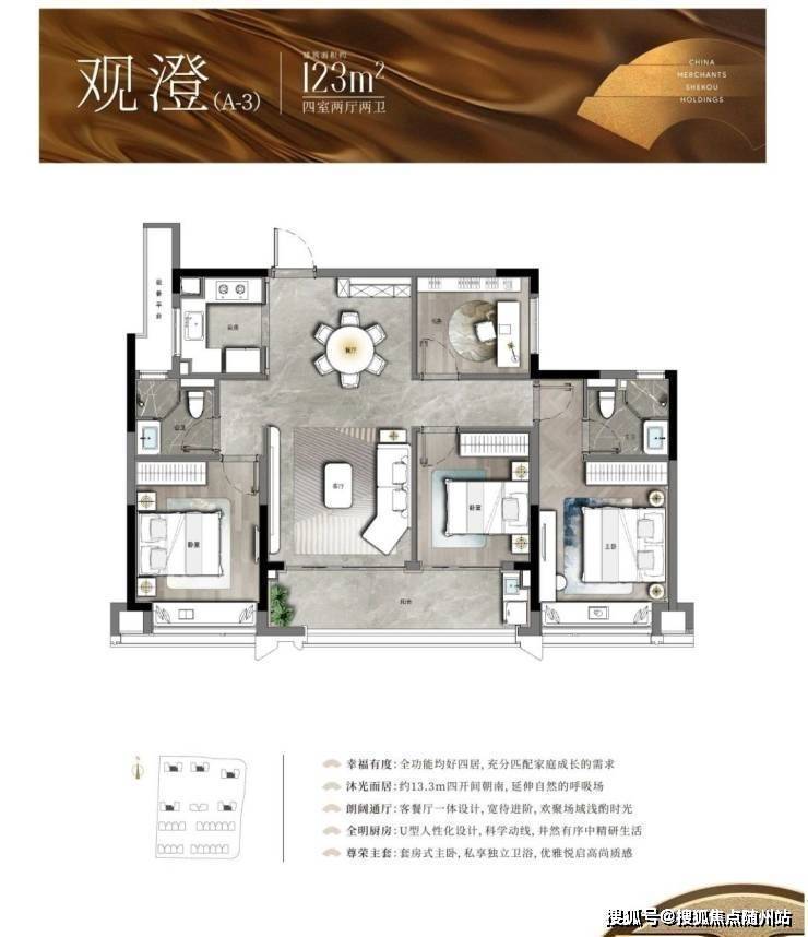 臻墅的每一个户型,皆由匠心而著。建面约228㎡下叠,以约7米南向开间横厅打破空间界限,将天光、风景与流动的空气引入室内,宛若展开一幅徐徐铺陈的天地长卷,奠定世家大宅的从容气度。
