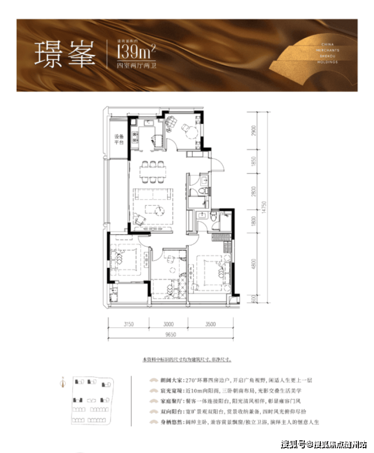 139㎡:四房两厅两卫,三开间朝南,约10米面宽,带环幕采光