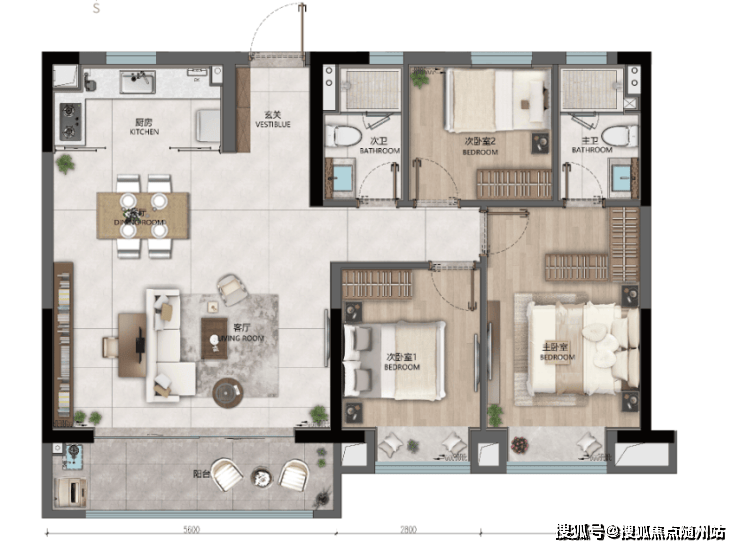 玄关尺度宽敞,预留超大收纳空间,出入更从容,约5.7米LDK阳光大边厅,抹去局限性,生活无界交融,南侧双联阳台,满室生辉,起居之间尽享阳光,套房主卧配置独立卫浴、步入式衣帽间,私密尊崇。
