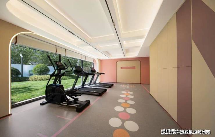 另一个是充满活力与激情的半开放健身房,色彩亮丽、器材专业,分为有氧、无氧甚至还有专门的瑜伽区,让锻炼更科学。通过大落地玻璃窗,大自然也加入到运动的节奏中,身体里的内啡肽分泌double!