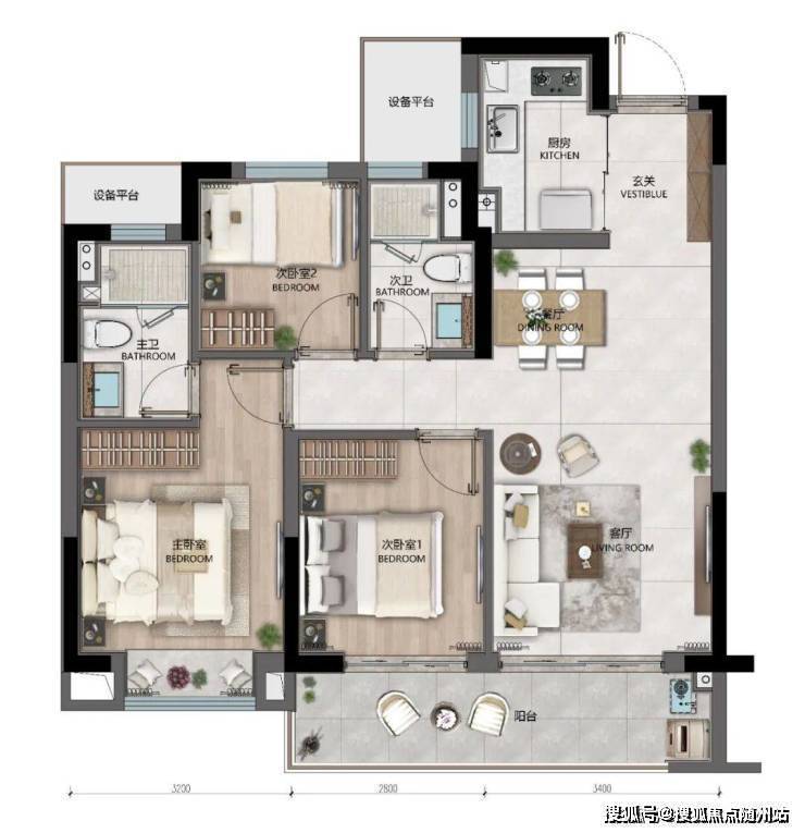 璀璨长乐规划了建面约96-130㎡四款户型,其中最让人眼前一亮的,无疑是建面约114㎡大三房户型。